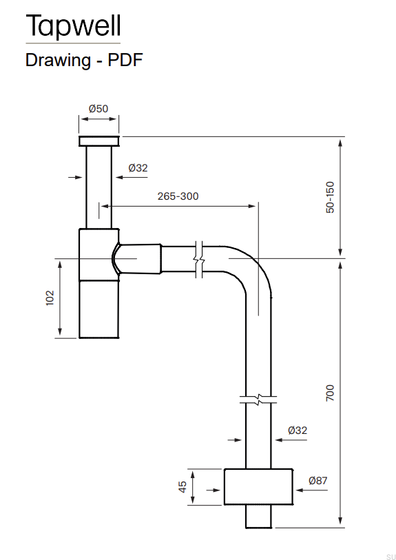Syfon umywalkowy z rurą typu L XA100 Mosiężny Czarny Chrom